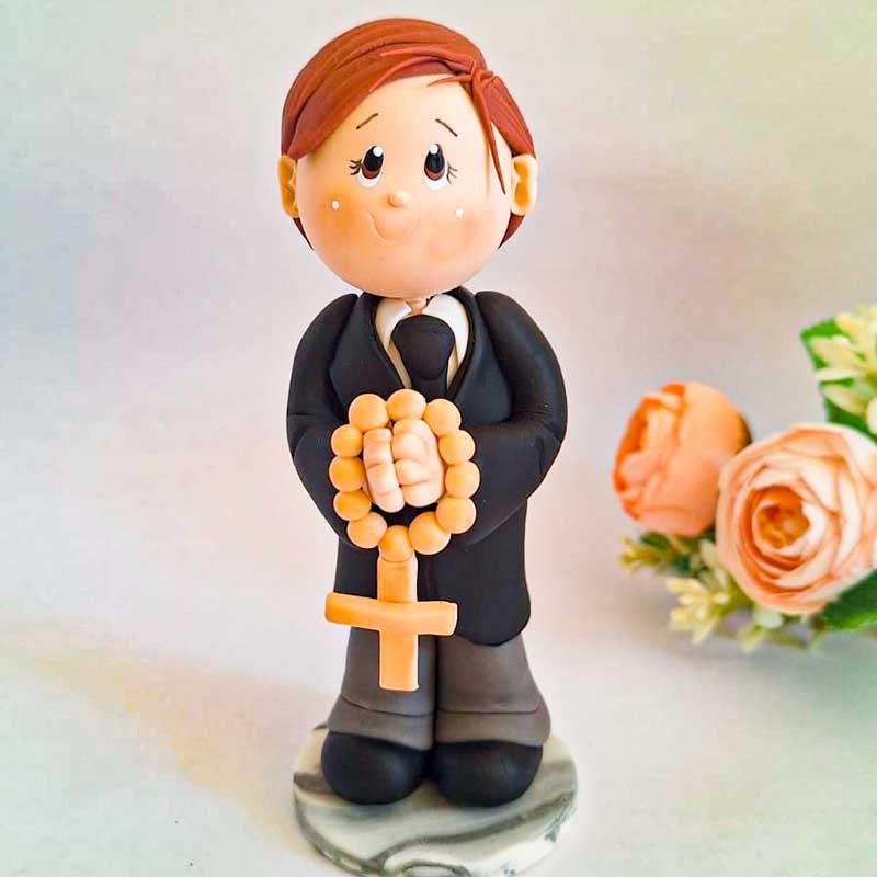 Celebra la primera comunión o confirmación con un toque de elegancia y delicadeza, con esta figuras de porcelana fría, ideal para decorar tu torta. Hecha a mano con una medida aproximada de 10-15 centímetros. Puedes elegir entre la figura de niña o niño, adaptándose a tu celebración.